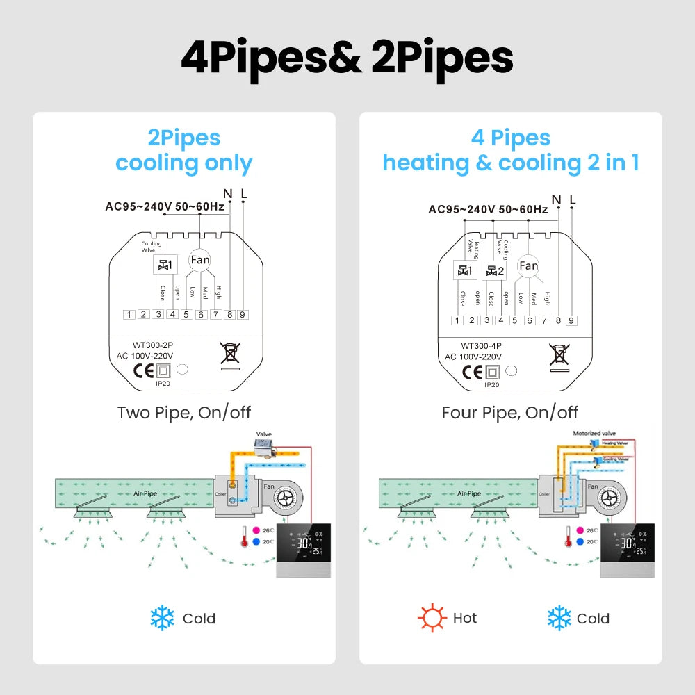 - 4-Pipe & 2-Pipe System Support: Compatible with heating+cooling (4-pipe) and cooling-only (2-pipe) configurations