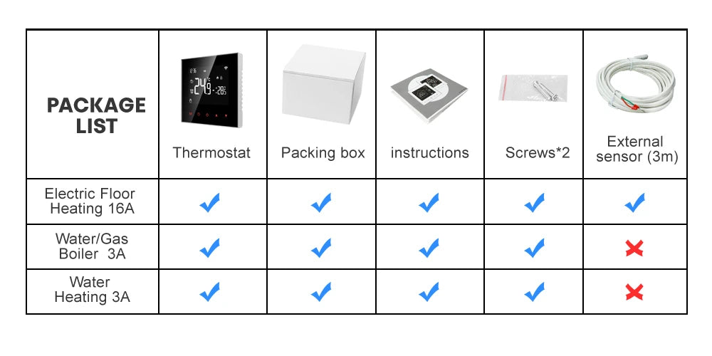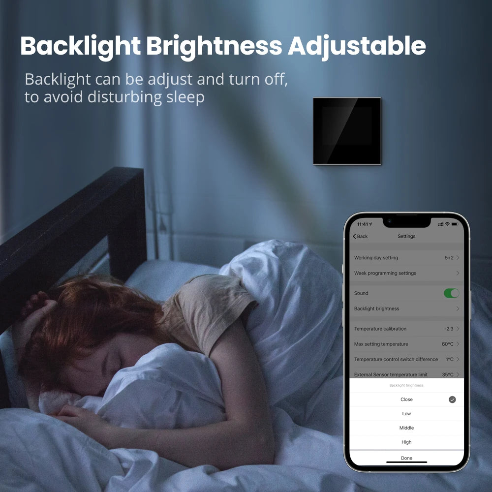 - Built-in + Floor Sensors: Dual sensor system for accurate room and floor temperature monitoring